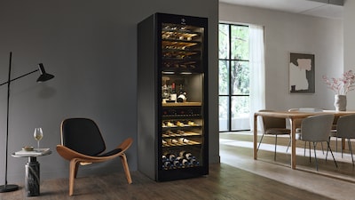 Discover our versatile wine units, available in freestanding and built-in options. Store different types of wine at their optimal serving temperatures with up to three temperature zones. Accommodate bottles of varying sizes with the FlexiFrame system, while UV-resistant glass protects against light damage. Engineered for minimal vibration, Miele wine units ensure gentle storage, preserving your wine's integrity. Whether integrated or standalone, our units blend into any kitchen design, combining precision engineering with an elegant aesthetic. Check the freestanding, built-in and built-under options we have for you.